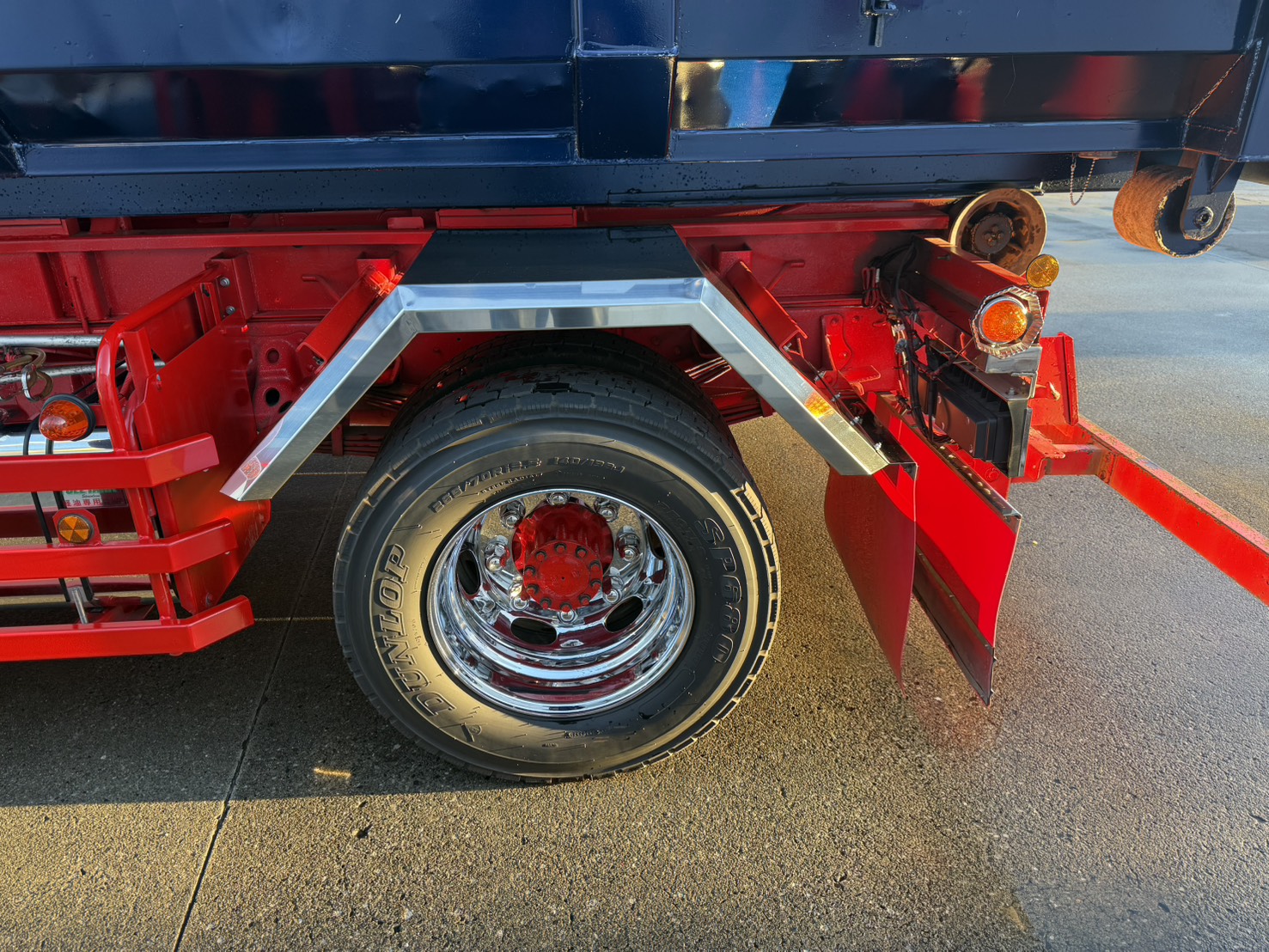 ダンプフェンダー取付け写真 取付け写真 2026.01.20 轟パーツ(日本製) オリジナルフェンダー 各写真 拡大できます ステンレス リアフェンダー 板厚1.5 大型 ダンプ10t用 一段曲げ 舟形タイプ 中型 ダンプ 4t用 二段曲げ 舟形タイプ